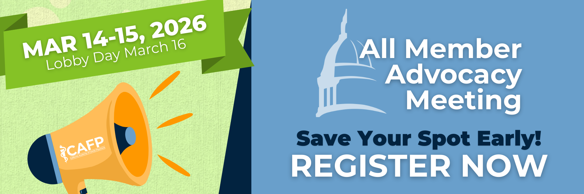 We're pleased to offer CAFP members a financial assistance registration fee waiver to attend the 2026 AMAM on March 14-15th. Please complete the request form prior to registering for AMAM. If your request is approved, you will receive a discount code for registration.